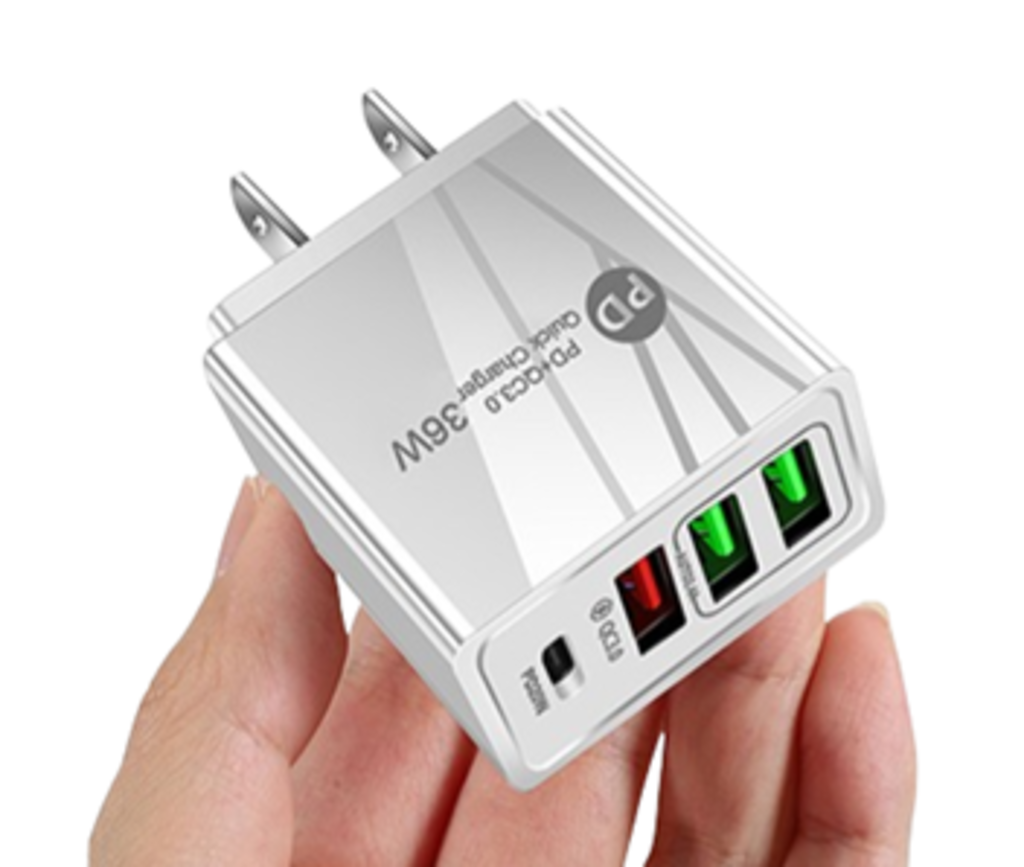 36W PD+QC3.0 4 USB Port Travel Quick Charger – White Only!