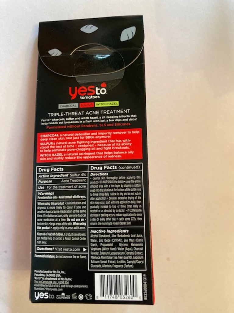 This YesTo Tomatoes Triple Threat Acne Treatment removes and fights blemishes through a super concentrated formula of Charcoal, Sulfur, and Witch Hazel. Allow the formula to work its magic overnight for the most effective zit zapping treatment.