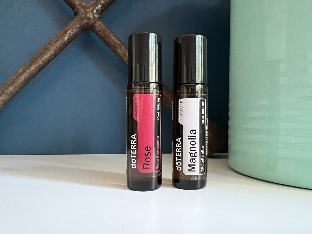 Rose and Magnolia bring a delightful calm fragrance to your day. Both come in an easy to use roller so that you can take these anywhere to use throughout the day.